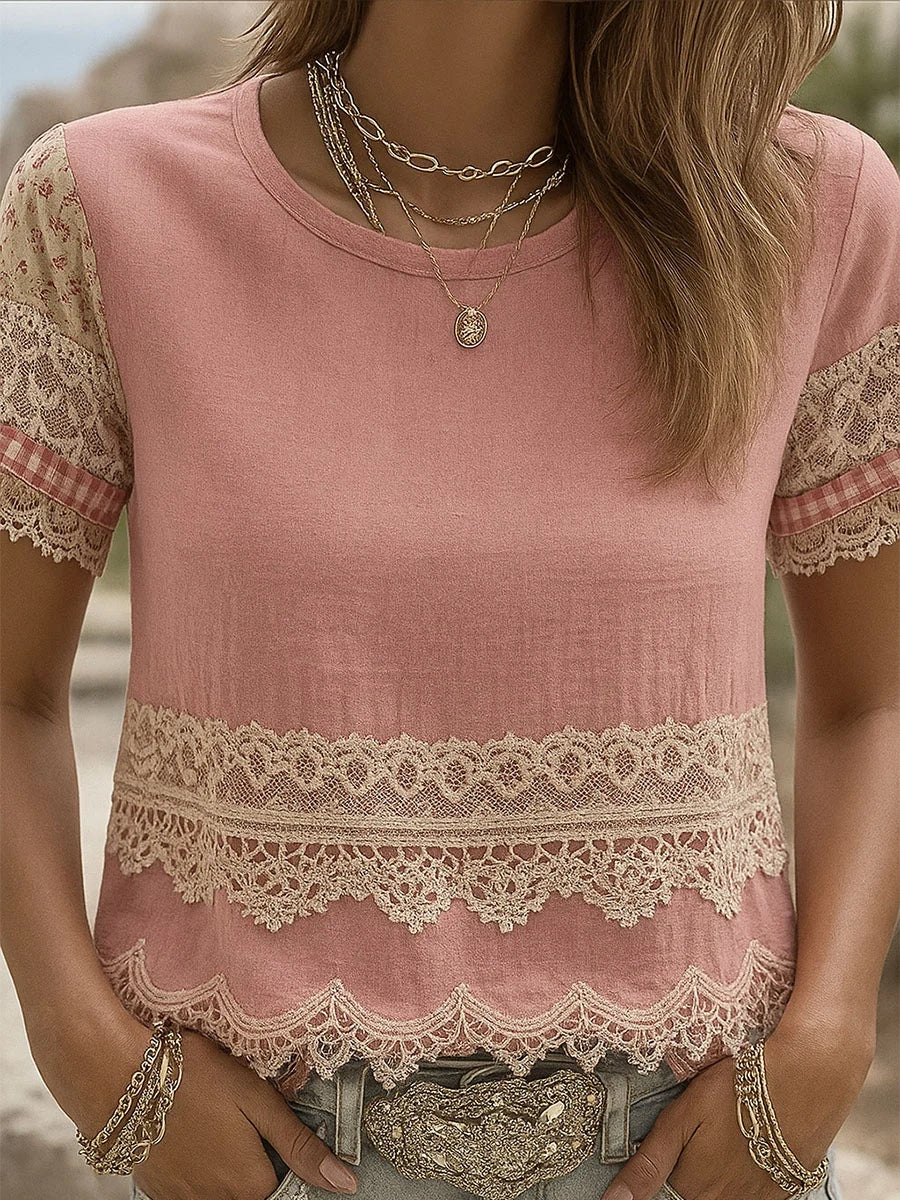 Γυναικείο Retro ροζ εκτύπωση άνετο Casual T-shirt