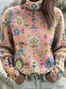 Γυναικείο εθνικό γεωμετρικό λουλούδι υψηλό λαιμό πουλόβερ γυναικών
